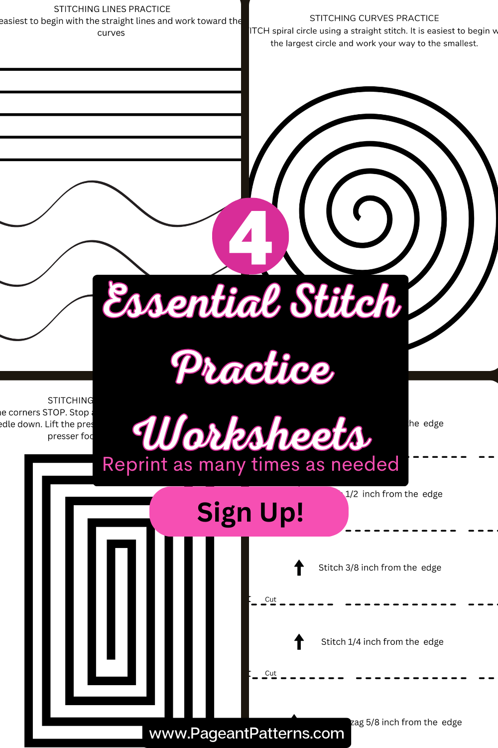 🧵 Stitch Practice & Confidence Building – Gain control of your machine with printable practice sheets for stitching lines, corners, curves, and seam allowances.