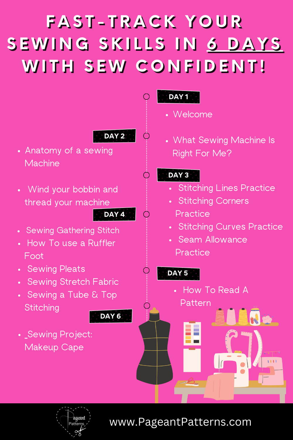 Master essential pageant sewing techniques with the Sew Confident course! While this course won’t teach you how to make a full pageant dress, it will give you the time-saving skills and polished techniques needed to create stunning pageant wear. Learn ruffles, pleats, topstitching, and more—all designed to elevate your sewing for competition-level designs. Plus, enjoy a FREE bonus pattern and sew-along tutorial to craft a protective makeup cape. Enroll now and start your journey to sewing with confidence!